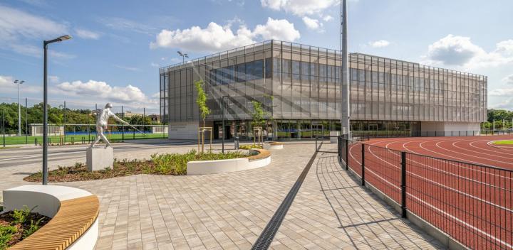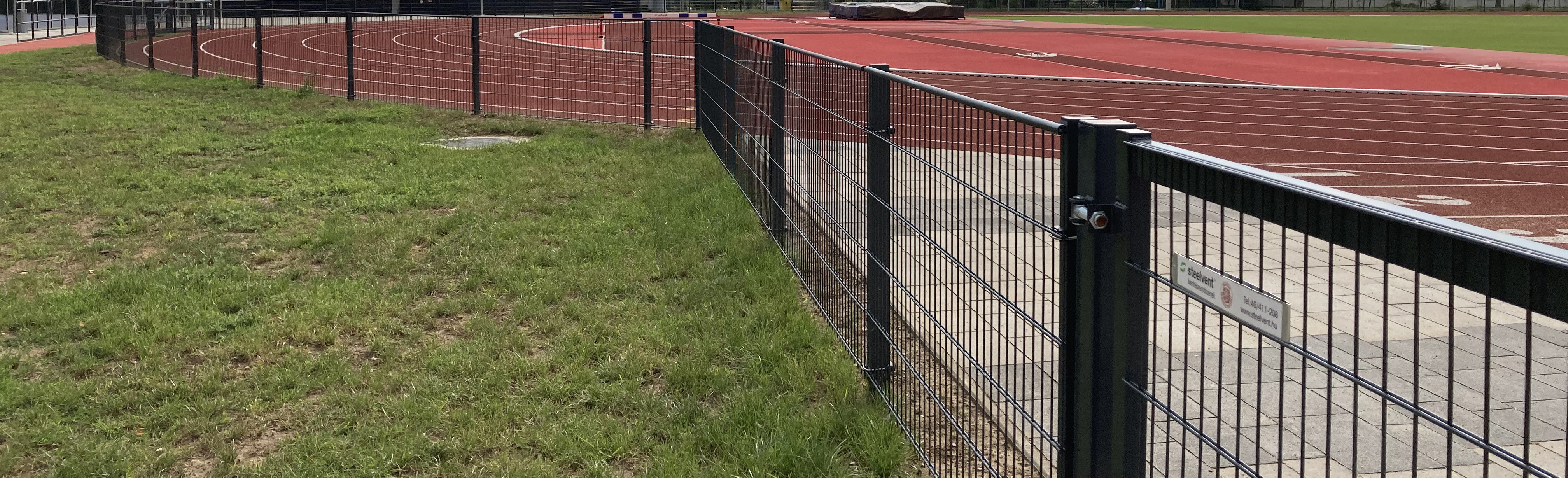 The Steelvent ST16 Botond double wire fence panel can also be adapted for specialized applications when equipped with a protective top tube. This solution has been approved by the Hungarian Athletics Federation and was implemented during the construction of the Nyíregyháza Athletics Centre.